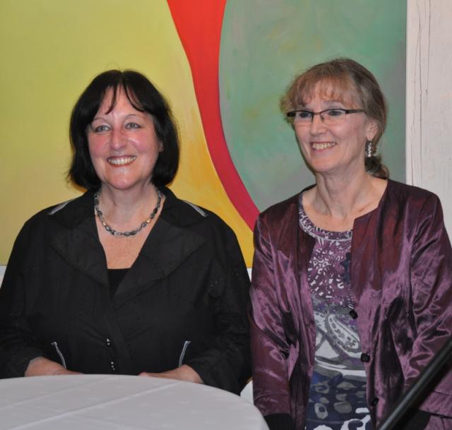 Malerinnen vor Malerei: Marianne Emmenegger und Diethild Herbolzheimer- Böttner (v.l.) vor eine Gemälde der Letzteren