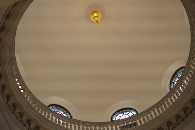 In der Einsegnungshalle des Freiburger Friedhofsdoms brennt das letzte Licht der Endlichkeit: Die Unendlichkeit flüchtet in den Himmel der Dom-Kuppel.