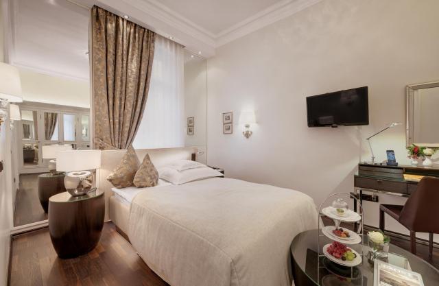 Stil-Vielfalt in den Zimmern: Einzelzimmer im Europäischen Hof ind Heidelberg.