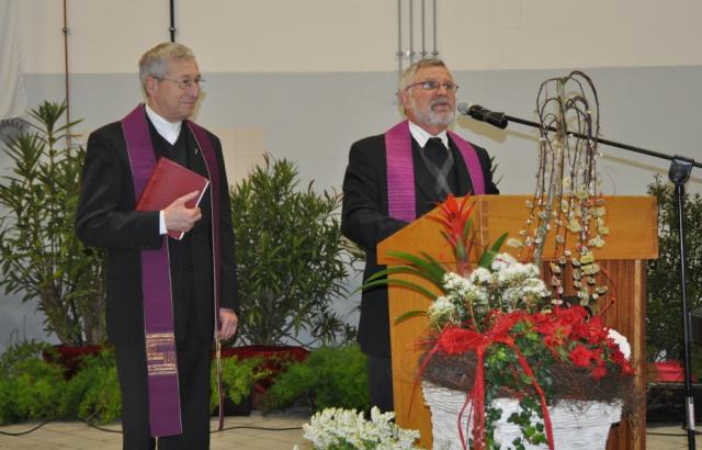 Sieht aus wie im Paradies, ist aber im Bauhof: Pfarrer Peter Klug und Peter Hanselmann (v.l.n.r.)