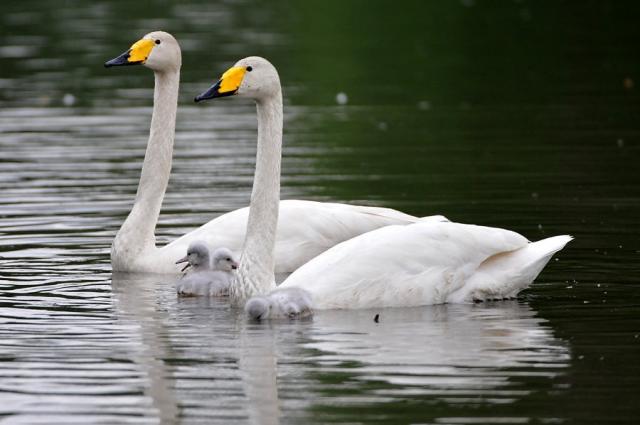 Schwanengeburt: Vier junge Singschwäne in Umkirchs Queen-Auguste-Victoria-Park