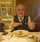 Leider konnten wir von dem "Menü bei Kerzenlicht" keine guten Fotos schießen. Deswegen beschreiben wir die "Geschmacksexplosionen" ausführlich. In meinem langen Leben habe ich seit 1971 vielen berühmten und unberühmten Köchen auf der ganzen Welt über die Schulter, in ihre Kochtöpfe und auf ihre Teller geschaut. Mit all diesen Erfahrungen war der "Lieblingskoch meines Lebens" Alfred Klink, vom Colombi-Hotel in Freiburg. Klink ist ein einmaliges und ganz seltenes Genie der Kochkunst, ein wahrer Weltmeister. Benedikt Geßler hat während seiner Zeit im Colombi von seiner Expertise profitiert und für eine saftige Gage 2018 für Roland Burtsche im Colombi-Hotel in Freiburg gekocht.