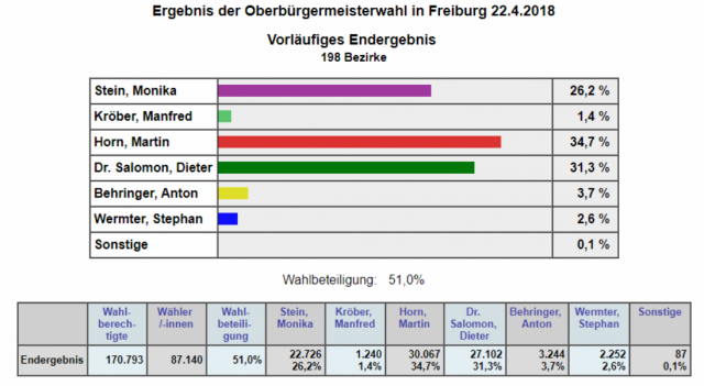 OB-Wahl: Freiburg wählt den Wechsel - Zwei Drittel der Wähler gegen Salomon!  13343  22.04.2018