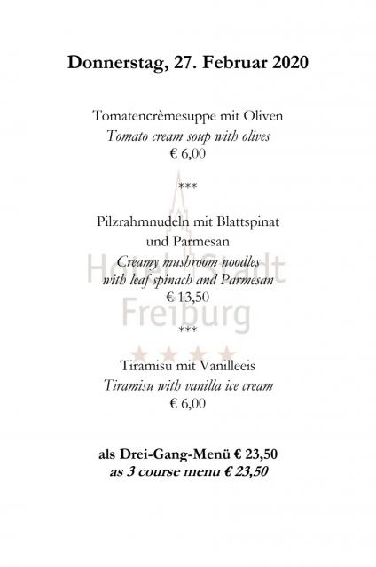 Donnerstag: 3-Gang-Tagesmenü von Spitzenkoch Matthias Dahlinger für EURO 23,50 im Hotel Stadt Freiburg