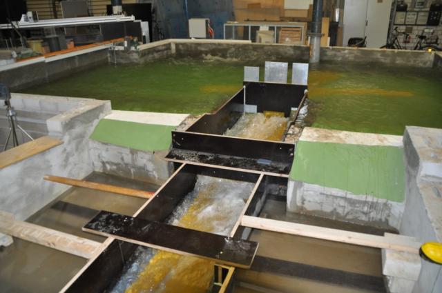 Fahrt zum IWG in Karlsruhe: Modell des neuen Rückhaltebeckens