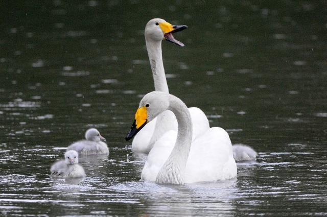 Schwanengeburt: Vier junge Singschwäne in Umkirchs Queen-Auguste-Victoria-Park