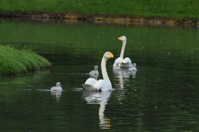 Singschwan-Orchester: Vier junge Singschwäne in Umkirchs Queen-Auguste-Victoria-Park!  6354  18.05.2012