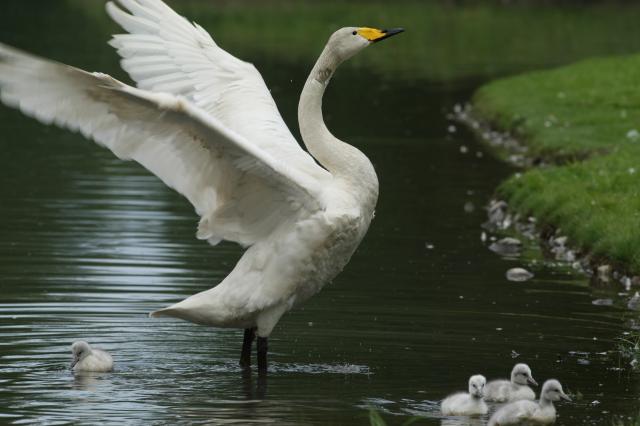 Singschwan-Orchester: Vier junge Singschwäne in Umkirchs Queen-Auguste-Victoria-Park!  6354  18.05.2012